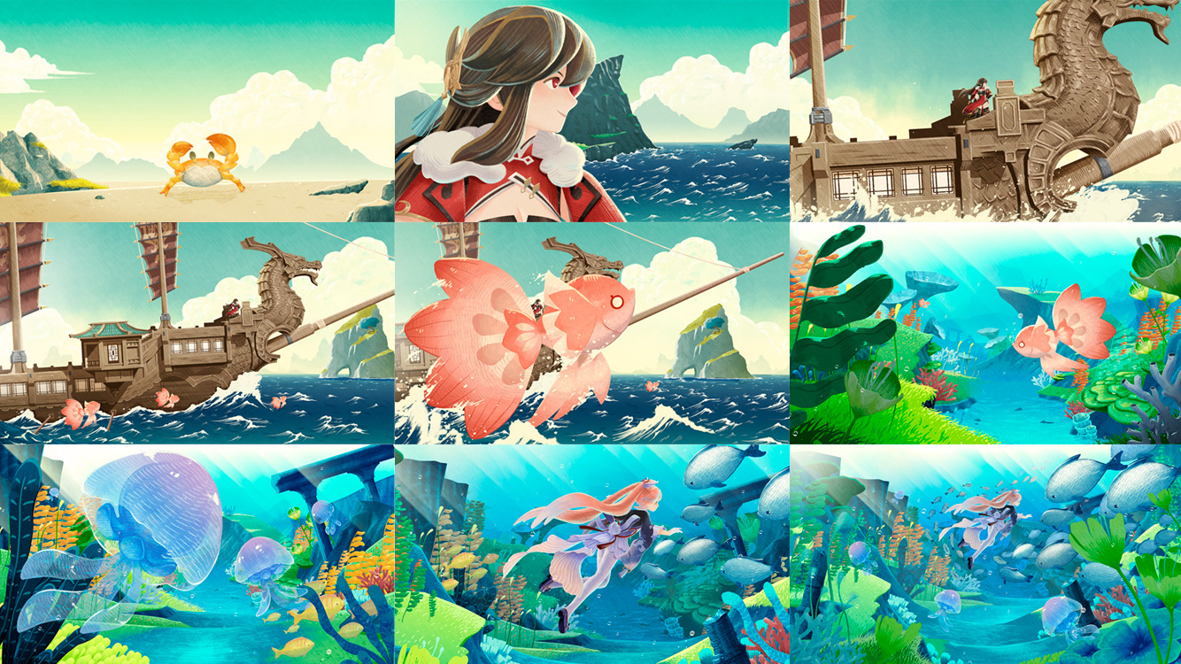 Trabajo de fondos ilustrados para el reconocido juego RPG Genshin Impact y su colaboración benéfica a favor del medio ambiente con Discovery Channel. Ver Video